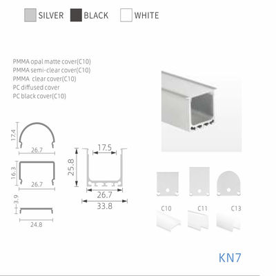 كn7راحة الألومنيوم الشخصي LED الإسكان الشريطي LED لشريط LED من الألومنيوم المؤكسد بغطاء أسود من الألمنيوم LED
